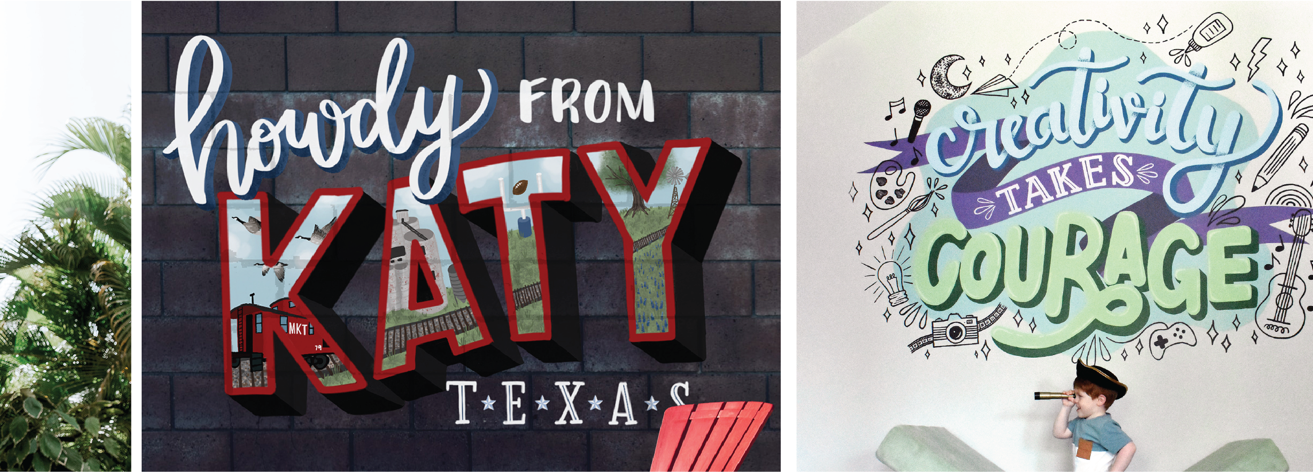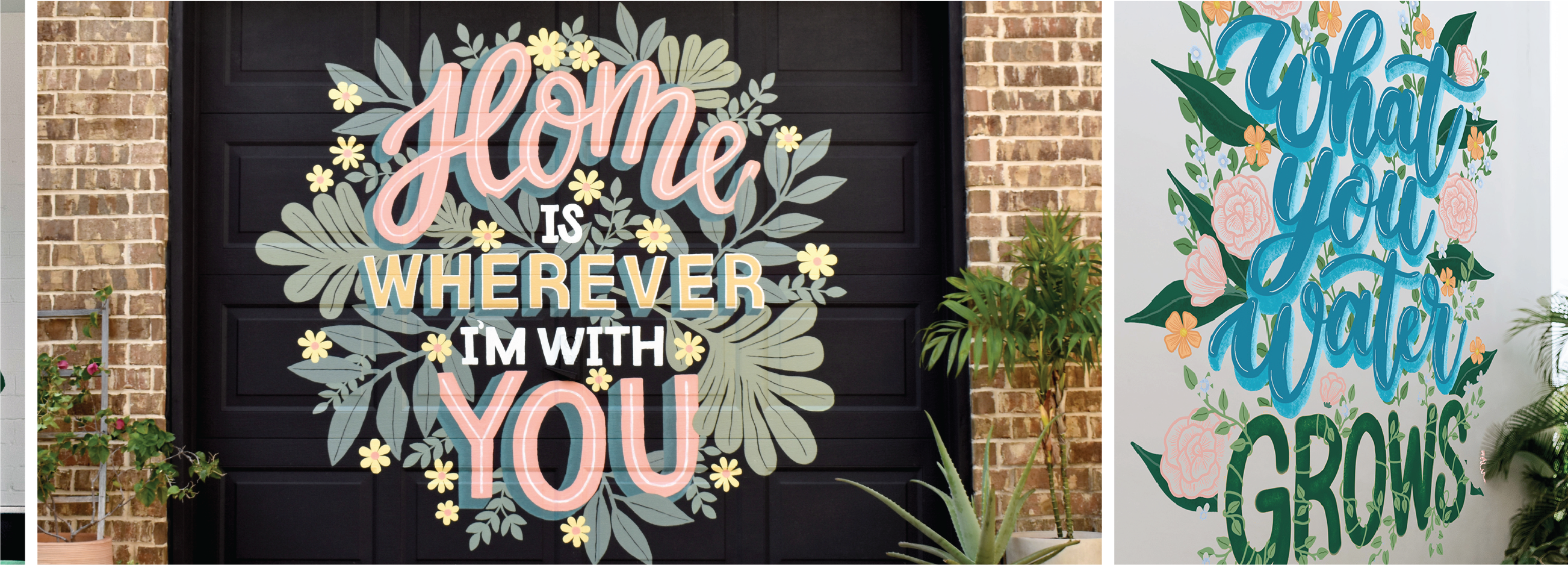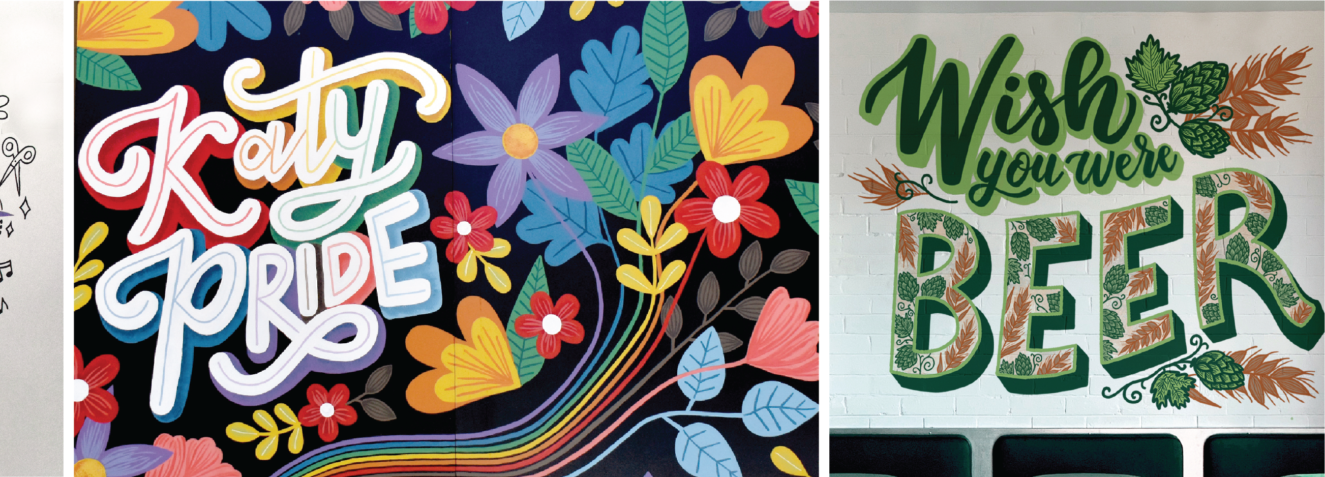 I’ve taken my signature signage aesthetic and am moving on to even bigger canvases – murals! Whether in an office, a cafe, or a playroom; murals can transform and add a touch of *whimsy* to any space – changing the way we engage with that environment. Murals can grab attention, create an emotional connection, or encourage social engagement (on or offline). I utilize my years of experience with illustration, hand lettering, and marketing to design murals that are custom tailored to each client and 100% original. I never use clip art or computer fonts in my work; everything is hand-drawn for a truly one of a kind piece of artwork in your space. Fill out my contact form below to get started on your mural project!